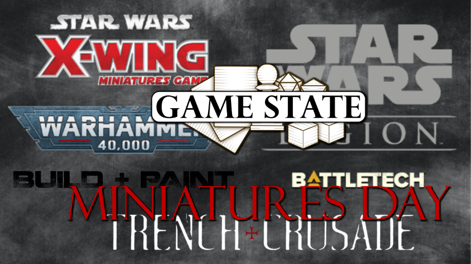 Today we’ve got Battletech on the tables at 6pm in the Battlefield, X-wing is on at 6pm in the Hangar Bay tables, and Warhammer is on the tables at 6pm along with potentially Trench Crusade! Come on in and see the chaos, and maybe become a part of it yourself! Learn to play, get tips on army and unit composition, and paint your miniatures! All that and more is here at Game State on Thursday!